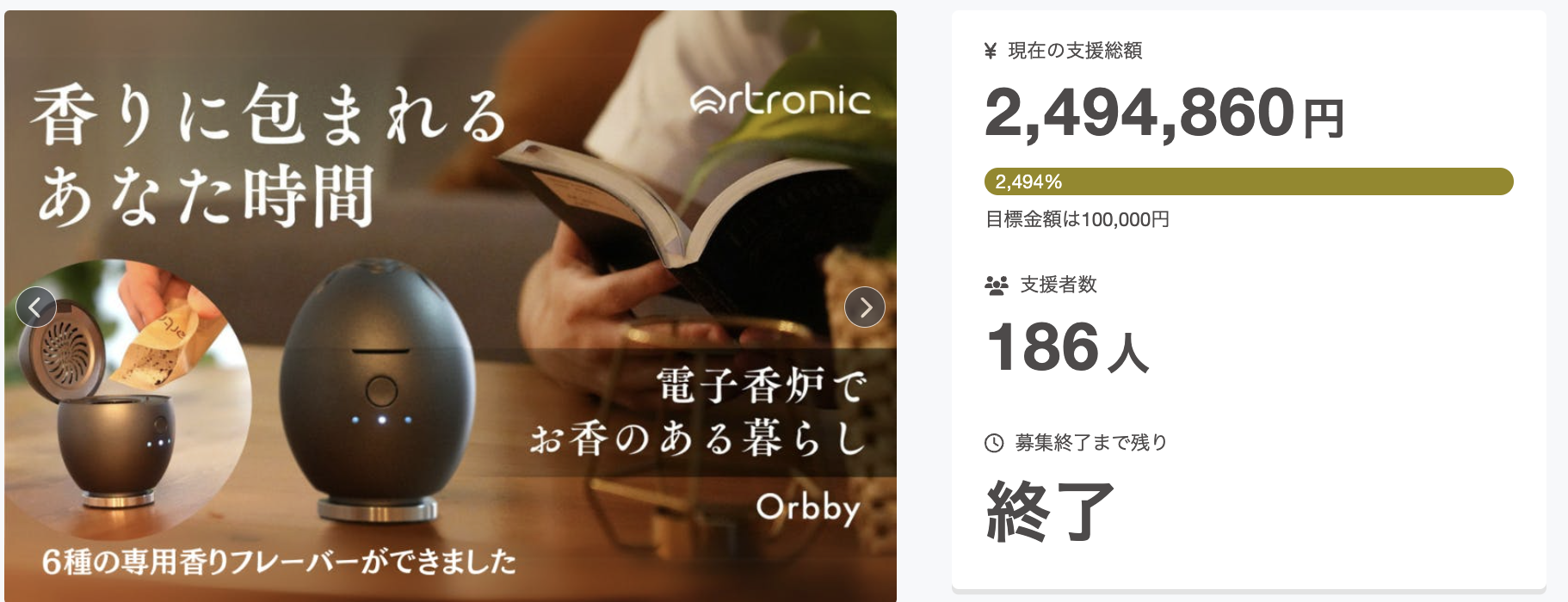 The flameless electronic incense burner “Orbby” successfully completed its crowdfunding campaigns on Makuake and machi-ya. We would like to express our heartfelt gratitude to everyone who supported us.
